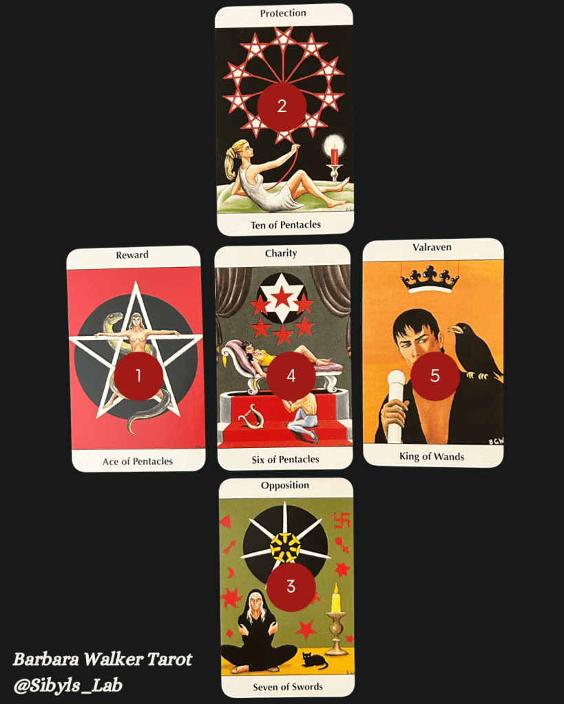 If you want a justification for the urgency of these themes, check the aforementioned post and video—although, if you’ve found your way here, chances are that you’re also feeling a bit “end times” these days. This isn’t the divination version of recent #RaptureTok shenanigans, but an acknowledgement of the prevailing dark mood of the moment. In the spirit of showing rather than telling, continue reading for two tarot spreads, interpretive strategies, and journal prompts. After all, your own laying out of the cards will be the greatest evidence of how these themes are imprinting—or not—on your current lived experience.