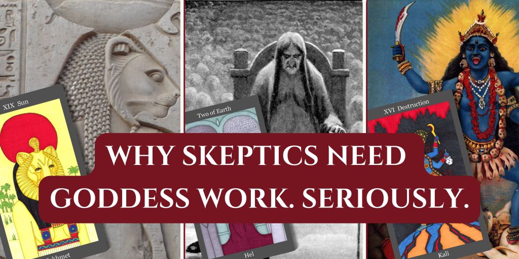 In other words words, I couldn’t help but think of you, my dear skeptic. And look, we get it. You’re interested in tarot as a psychological tool, maybe even a creative prompt for self-reflection, but you draw the line at invoking ancient deities. The moment someone starts talking about “channeling Kali’s energy” or “calling upon the Dark Mother,” your bullsh*t detector starts pinging.
