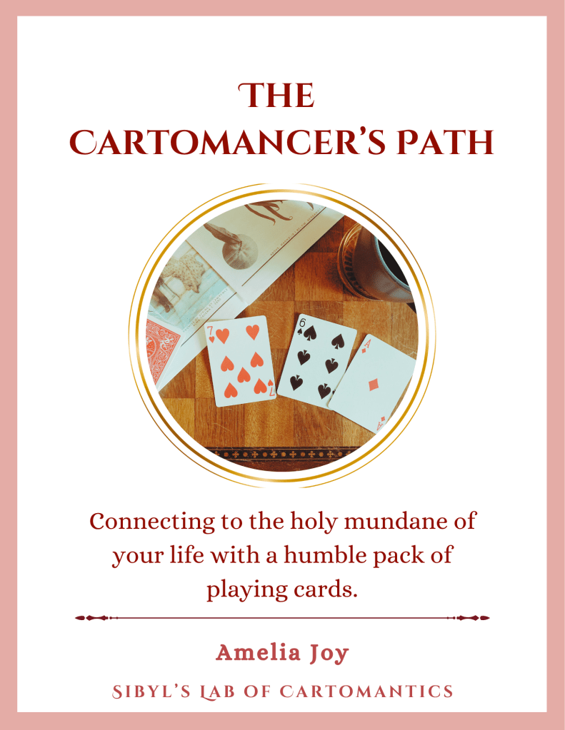 If this work resonates and you want structured guidance for exploring symbolic systems, check out The Cartomancer’s Path: A Playing Card Workbook by Amelia. It’s a five-part written course designed to help you connect to the sacred mundane of your life through a humble, powerful playing card deck.