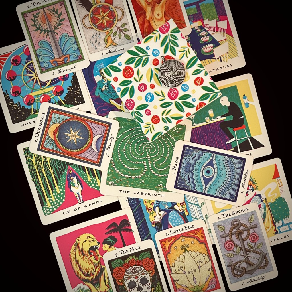 Welcome, seasoned seekers and cartomancy newbies alike. As a lover of stories, my offerings engage the imagination. How can the cards invite you to cross thresholds or envision Paris, map labyrinths or descend into the underworld?