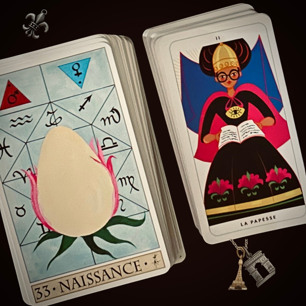 Are you seeking classic cartomancy with a Francophile flair? 18th-century Parisians consulted fortunetellers with their messy daily dramas: relationship intrigues, career politics, fantasized futures. Times have changed, but messes stay the same. This reading uses at least two forms of traditional French cartomancy to address your own urgent mess. Between Oracle Belline, Oracle de la Triad, Lenormand, Eudes Picard Tarot, and Tarot de Marseille, we will find the pithy, practical, Parisian-flavored answers you seek.